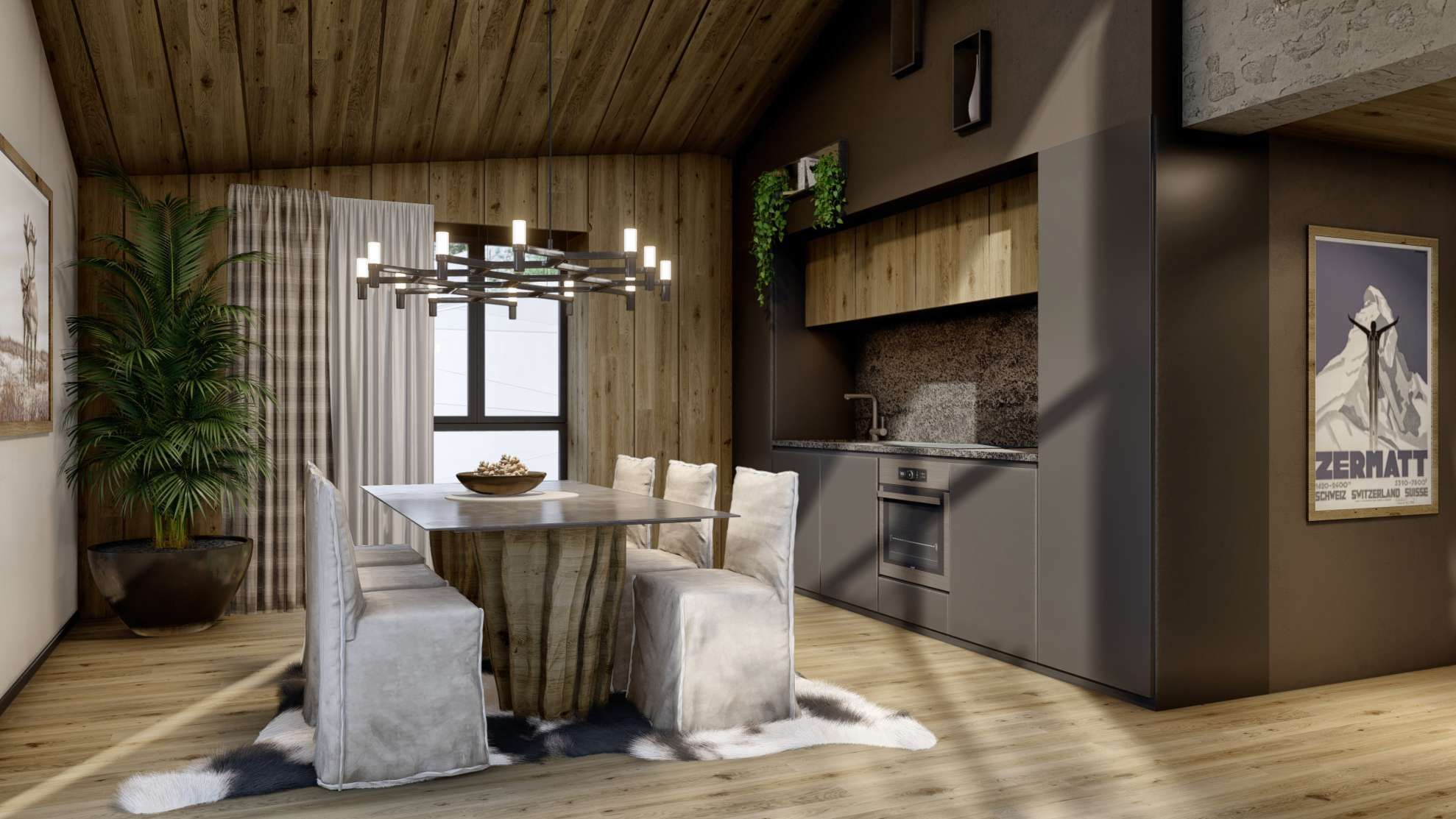 L'unità immobiliare U06 si trova al piano attico del Cottage, con vista a 360 gradi, dal Passo Gavia al monte Castellaccio ed al centro del paese; comprende un ampio ed accogliente soggiorno con cucina separata, vetrate a tutt’altezza dalle quali si accede allo splendido terrazzo esterno vivibile ed arredabile. L'unità, che è disposta su due livelli collegati da una scala interna, dispone di tre camere da letto e due bagni.