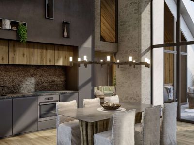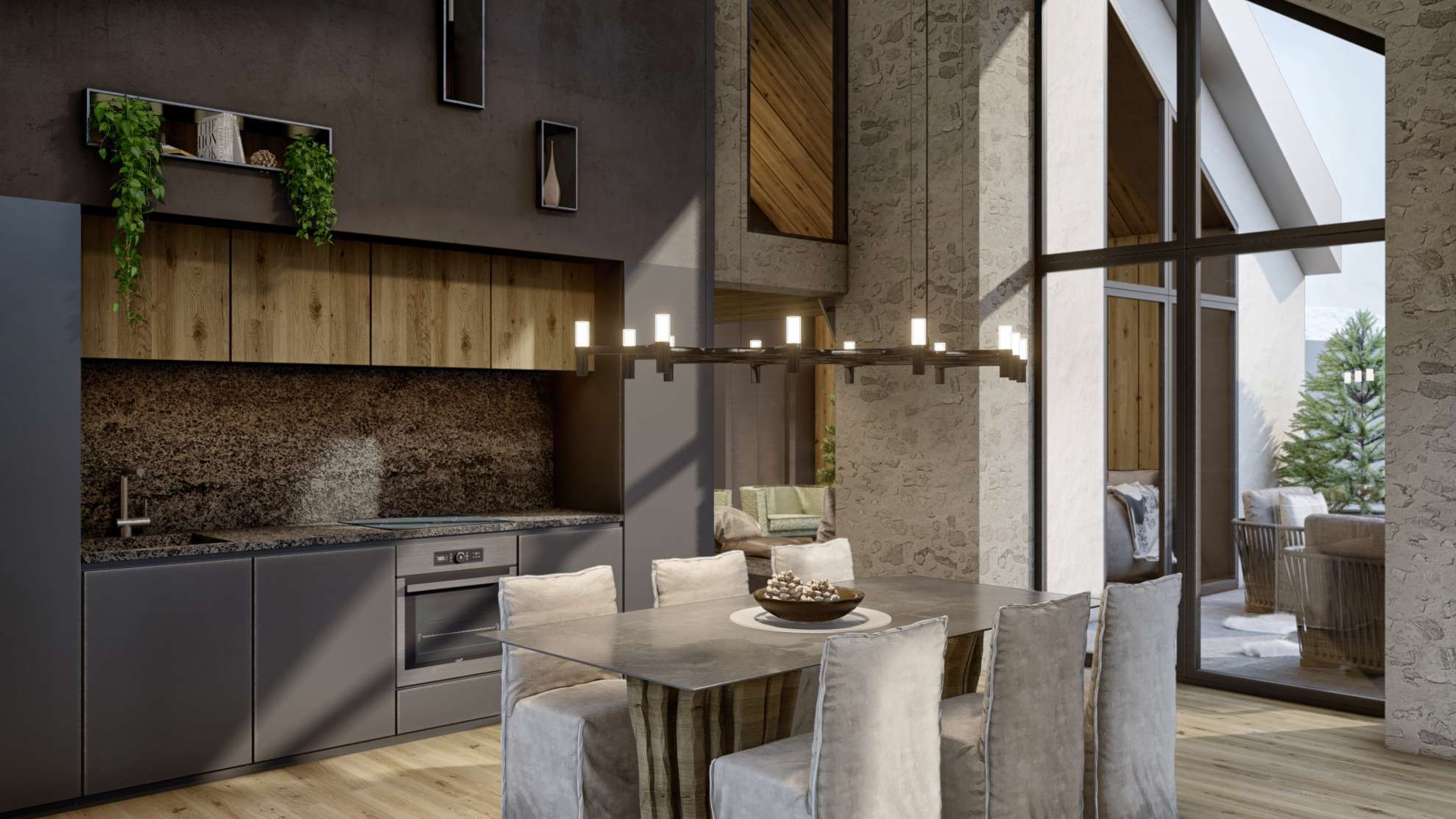 Il progetto nasce dall’idea di realizzare un’architettura minuta che si stagli nel paesaggio ricalcando i profili irregolari e decisi delle montagne, un’architettura attenta all’inserimento ambientale e alle sue visuali panoramiche che costruisca un profondo legame con il contesto circostante e la sua naturalità sia dall’interno che dall’esterno. Ecco, quindi, le linee pulite del costruito, le forme singolari dei tetti e la scelta di materiali locali per le finiture, sapientemente dosati e miscelati come la natura insegna. “L’ombra della roccia”: un piccolo scrigno incastonato sul versante esposto al sole di Ponte di Legno, che custodisce più unità abitative ciascuna con soluzioni interne uniche e visuali inedite sul panorama.